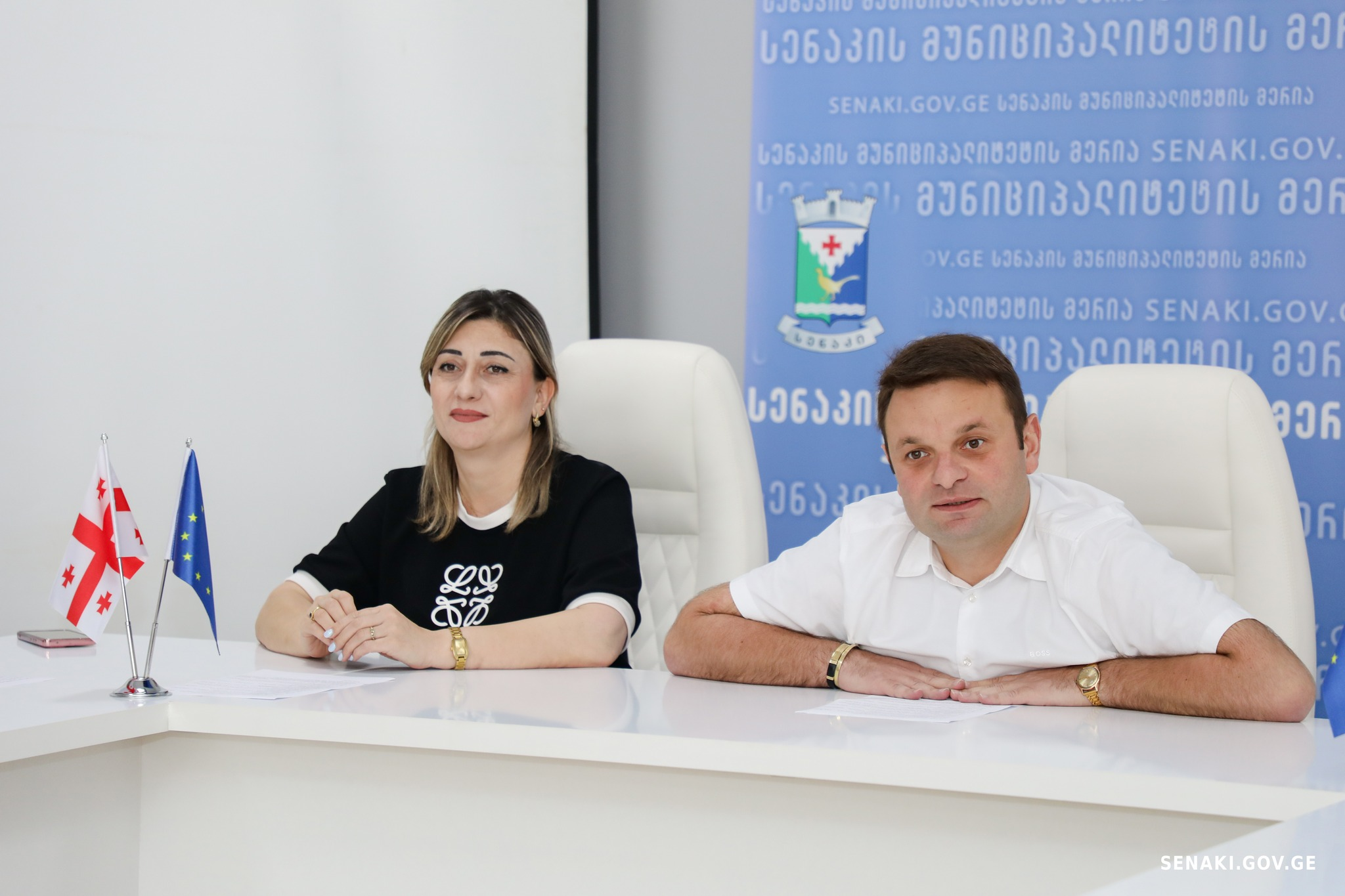 სენაკის მერი ვახტანგ გადელია და მისი მოადგილე ნანა ზარანდია (წყარო: სენაკის მერიის Facebook)